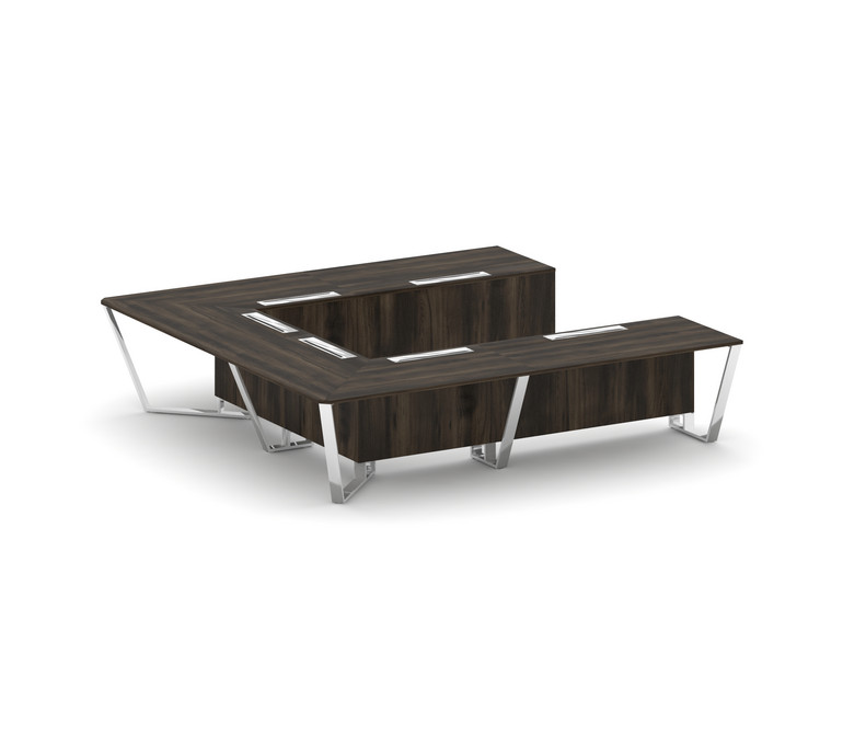 Steel Meet Стол переговорный П-образный MD-PR.B.SP-11P Дуб Мали/Нержавеющая Сталь/Хром 3200*3200*750