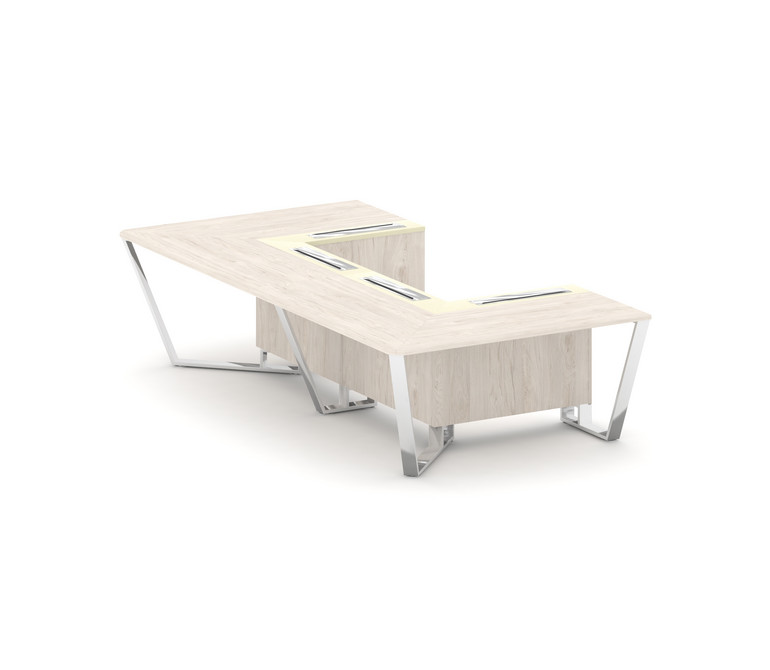 Steel Meet Стол переговорный П-образный MM-PR.B.SP-07P Денвер Светлый/Ваниль Глянец/Нержавеющая Стал