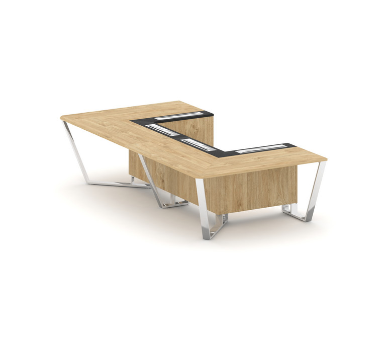 Steel Meet Стол переговорный П-образный MM-PR.B.SP-07P Тиквуд Светлый/Графит Глянец/Нержавеющая Стал