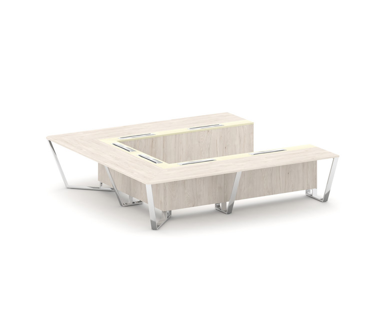 Steel Meet Стол переговорный П-образный MM-PR.B.SP-11P Денвер Светлый/Ваниль Глянец/Нержавеющая Стал