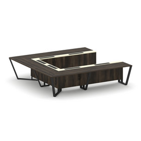 Steel Meet Стол переговорный П-образный MM-PR.B.SP-11P Дуб Мали/Графит Глянец/Нержавеющая Сталь/Хром