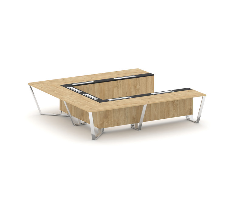 Steel Meet Стол переговорный П-образный MM-PR.B.SP-11P Тиквуд Светлый/Графит Глянец/Нержавеющая Стал