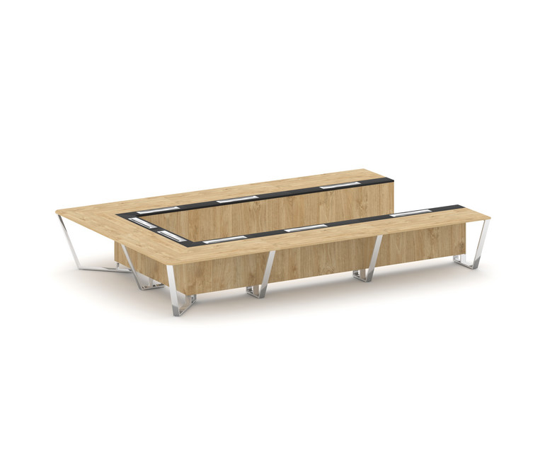 Steel Meet Стол переговорный П-образный MM-PR.B.SP-15P Тиквуд Светлый/Графит Глянец/Нержавеющая Стал