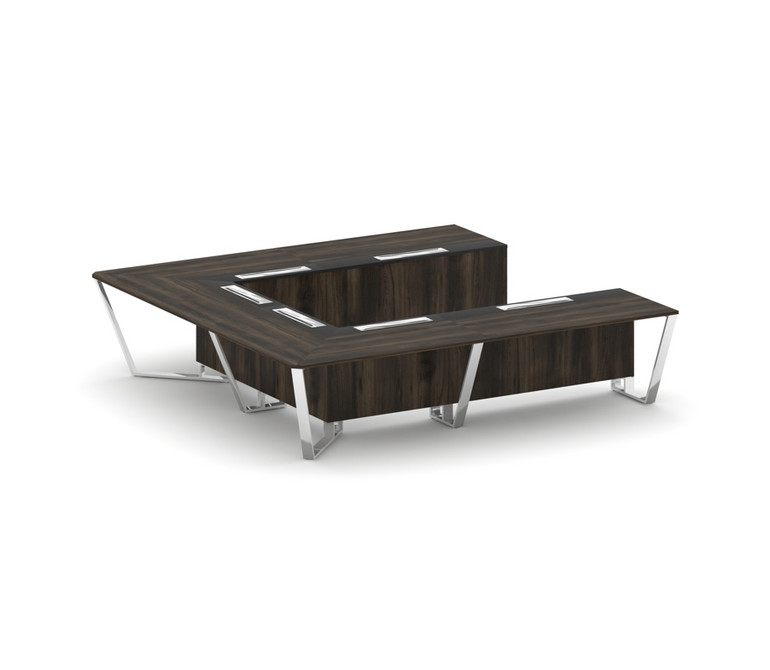 Steel Meet Стол переговорный П-образный MMK-PR.B.SP-11P Дуб Мали/Графит Глянец/Нержавеющая Сталь/Хро