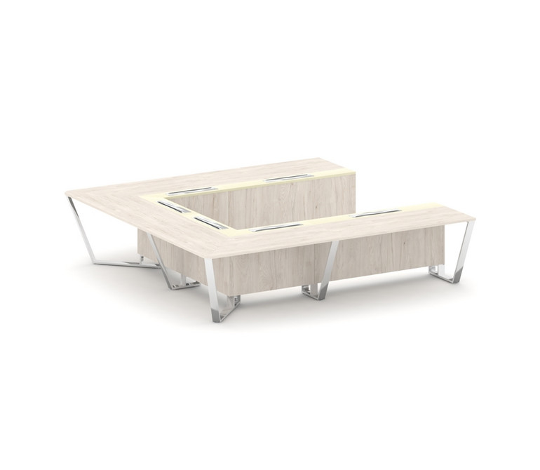 Steel Meet Стол переговорный П-образный MMK-PR.B.SP-11P Дуб Мали/Ваниль Глянец/Нержавеющая Сталь/Хро