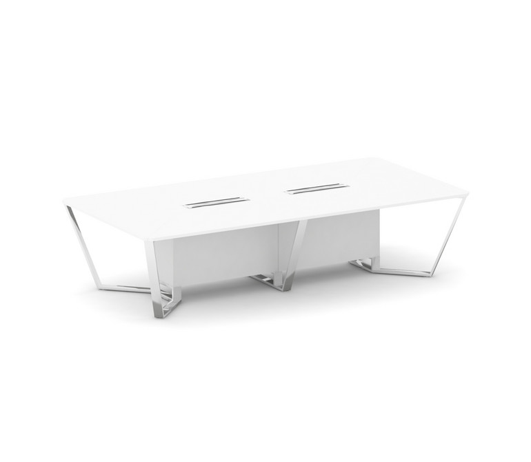 Steel Meet Стол переговорный прямоугольный MDK-PR.B.SP-12 Белый Бриллиант/Нержавеющая Сталь/Хром 320