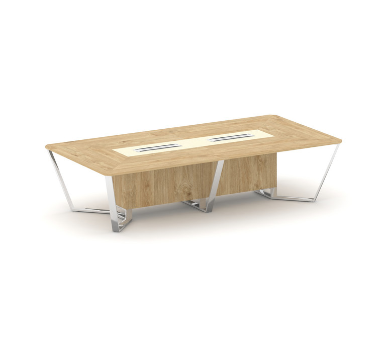 Steel Meet Стол переговорный прямоугольный MM-PR.B.SP-12 Тиквуд Светлый/Ваниль Глянец/Нержавеющая Ст