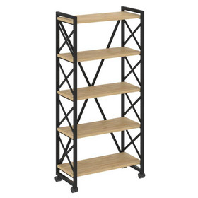 Loft Стеллаж на колесных опорах-5 полок VR.L-MST.K-5.8 Тиквуд Светлый/Металл Черный 800*400*1704