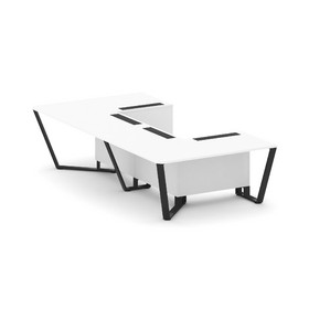 Steel Meet Стол переговорный П-образный KD-PR.B.SP-07P Белый Бриллиант/Металл Черный 1600*3200*750