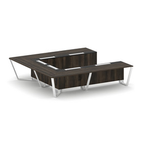 Steel Meet Стол переговорный П-образный KMK-PR.B.SP-11P Тиквуд Светлый/Графит Глянец/Металл Белый 32