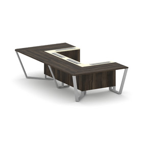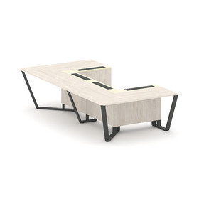 Steel Meet Стол переговорный П-образный KM-PR.B.SP-07P Дуб Мали/Графит Глянец/Металл Белый 1600*3200