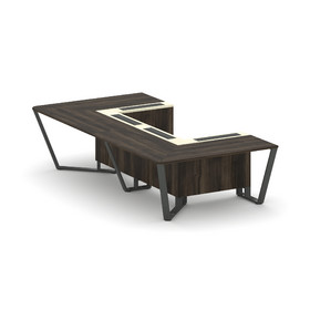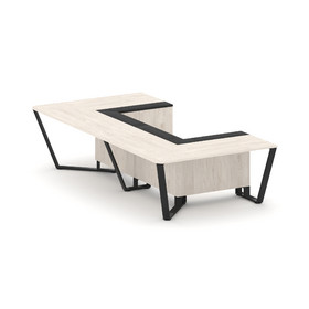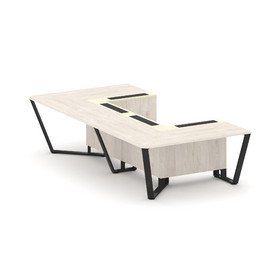 Steel Meet Стол переговорный П-образный KM-PR.B.SP-07P Дуб Мали/Ваниль Глянец/Металл Черный 1600*320