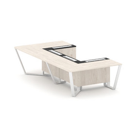 Steel Meet Стол переговорный П-образный KM-PR.B.SP-07P Дуб Мали/Ваниль Глянец/Металл Белый 1600*3200