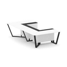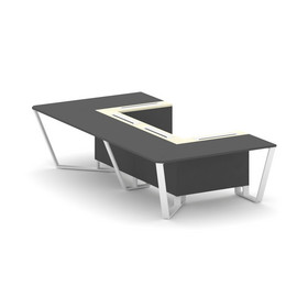 Steel Meet Стол переговорный П-образный KMK-PR.B.SP-07P Белый Бриллиант/Графит Глянец/Металл Черный