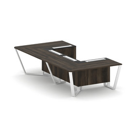 Steel Meet Стол переговорный П-образный KMK-PR.B.SP-07P Дуб Мали/Графит Глянец/Металл Белый 1600*320