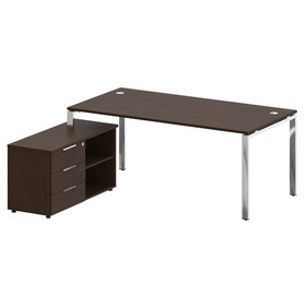 Metal System Direct Стол руковод. с тумбой БГ.СРТ-5.9 (R) Венге Цаво/Нержавеющая Сталь 1900*1720*750