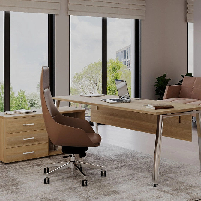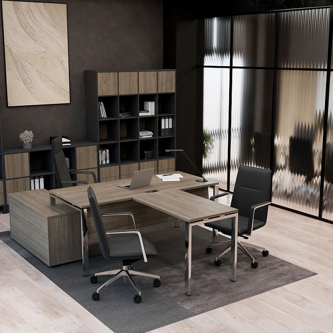 Индивидуальная комплектация: Широкий выбор форм опор и цветов отделки позволяет создать кабинет, идеально соответствующий вашим представлениям об идеальном офисе.
