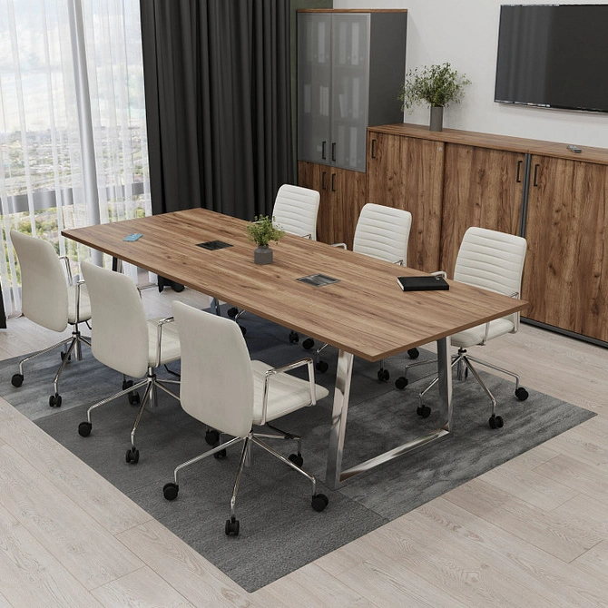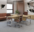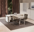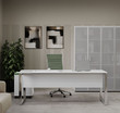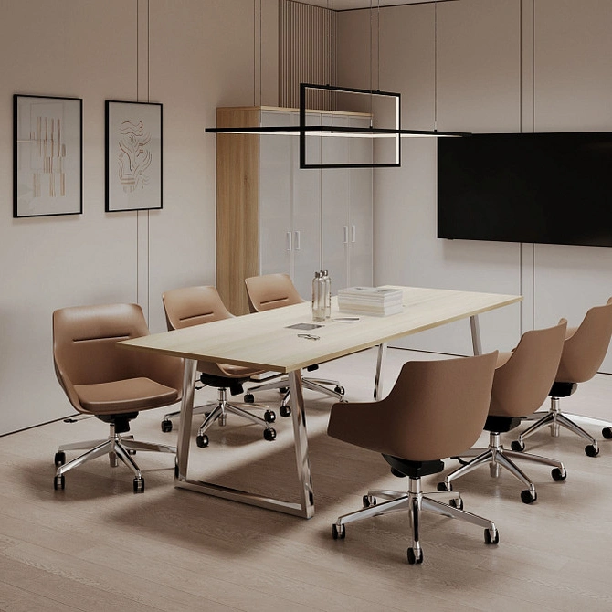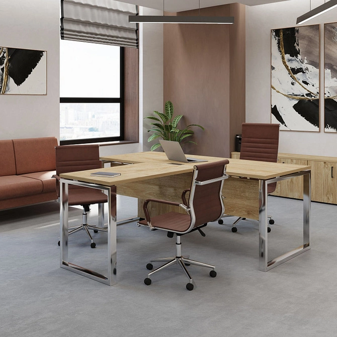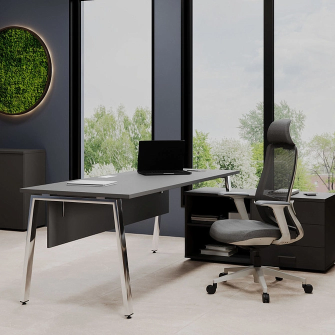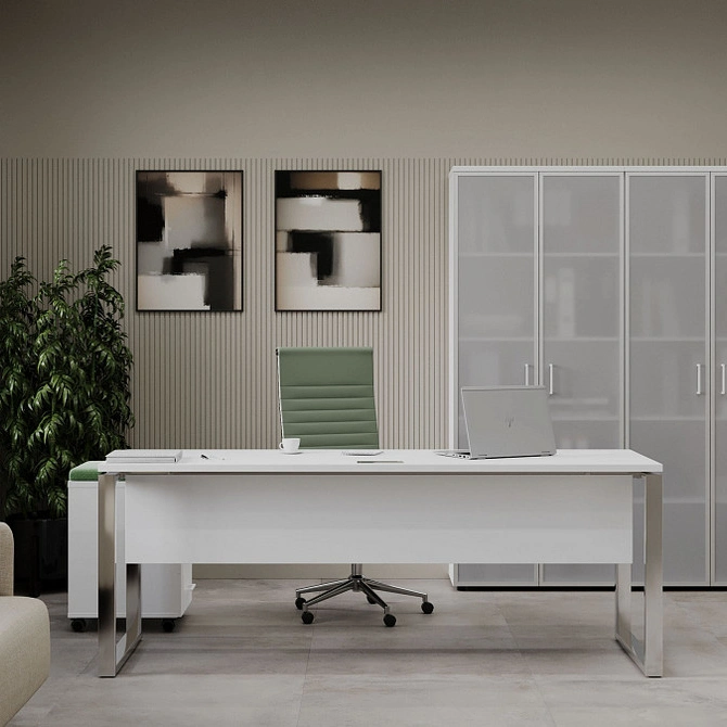 Эта коллекция создана для тех, кто ценит исключительность. В ней тщательно продумана каждая деталь для формирования вдохновляющего и суперфункционального рабочего пространства. Особое внимание уделено дизайну металлокаркаса: зеркальный блеск и изящные линии опор не просто несут нагрузку, но и превращают кабинет в арт-объект, отражающий современность и безупречный вкус компании.