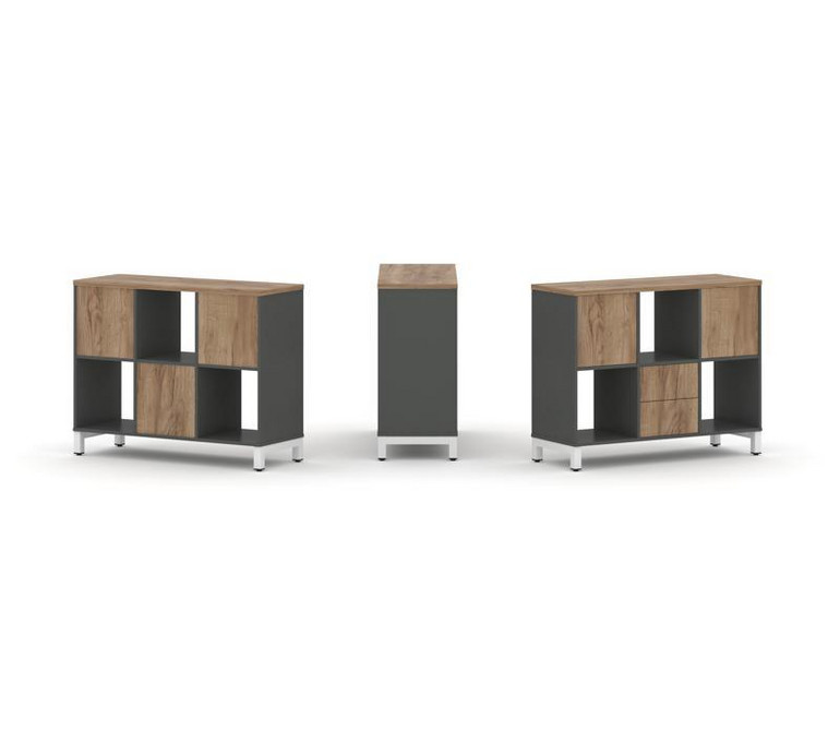 Style Project Набор стеллажа 1 сторон., 2 яр. SN.NS-231 Антрацит/Дуб Табак/Металл Белый 1121*400*881