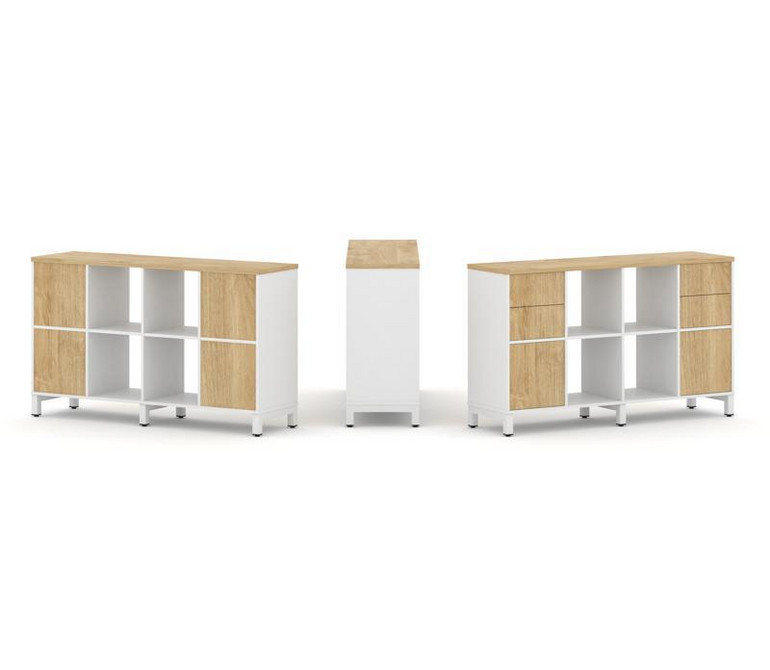 Style Project Набор стеллажа 1 сторон., 2 яр. SN.NS-241 Белый/Тиквуд Светлый/Металл Белый 1488*400*8