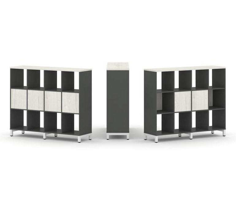 Style Project Набор стеллажа 1 сторон., 3 яр. SN.NS-341 Антрацит/Дуб Наварра/Металл Белый 1488*400*1