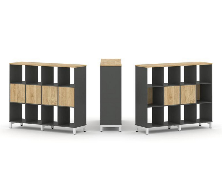 Style Project Набор стеллажа 1 сторон., 3 яр. SN.NS-341 Антрацит/Тиквуд Светлый/Металл Белый 1488*40