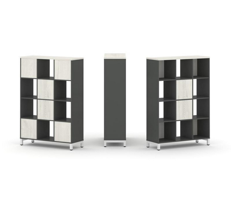 Style Project Набор стеллажа 1 сторон., 4 яр. SN.NS-431 Антрацит/Дуб Наварра/Металл Белый 1121*400*1