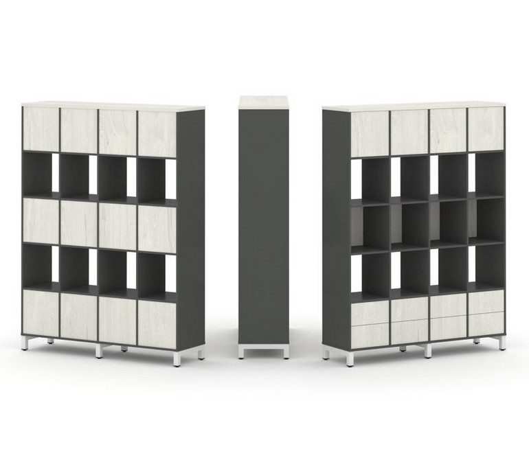 Style Project Набор стеллажа 1 сторон., 5 яр. SN.NS-541 Антрацит/Дуб Наварра/Металл Белый 1488*400*1