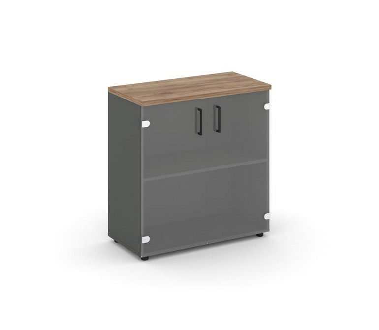 Style Project Шкаф низкий широкий SN.STS-302 Антрацит/Дуб Табак/Прозрачный/Черный Ручки 796*400*833