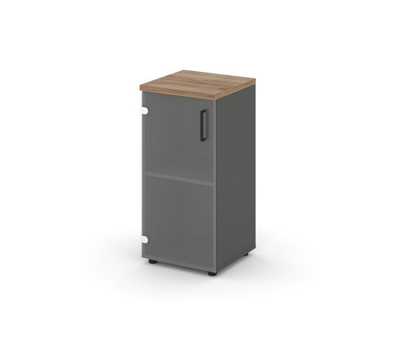 Style Project Шкаф низкий узкий SN.STU.E-302(L) Антрацит/Дуб Табак/Прозрачный/Черный Ручки 400*400*8