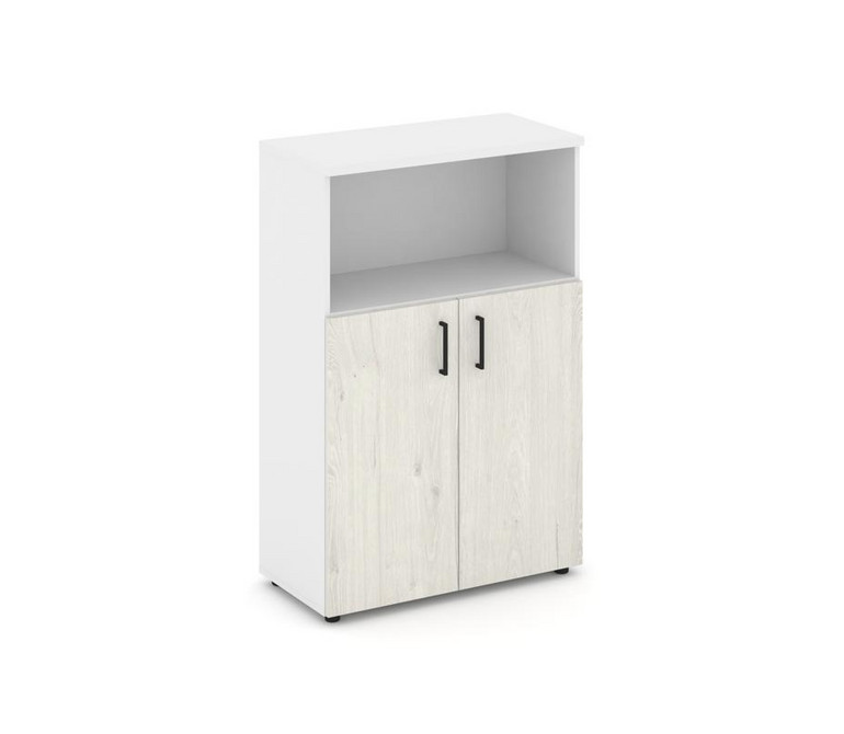 Style Project Шкаф средний широкий SN.STS-201 Белый/Белый/Дуб Наварра/Черный Ручки 796*400*1203