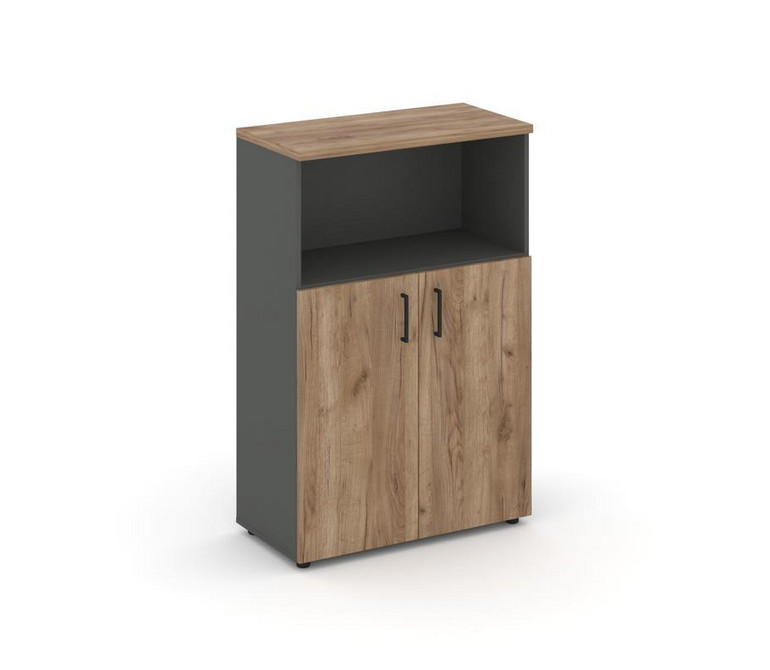 Style Project Шкаф средний широкий SN.STS.E-201 Антрацит/Дуб Табак/Черный Ручки 796*400*1203