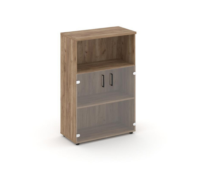 Style Project Шкаф средний широкий SN.STS.E-202 Дуб Табак/Прозрачный/Черный Ручки 796*400*1203