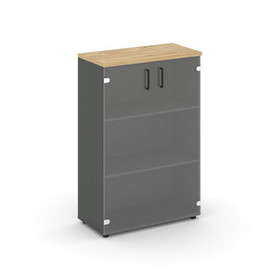 Style Project Шкаф средний широкий SN.STS.E-203 Антрацит/Дуб Табак/Сатин/Черный Ручки 796*400*1203