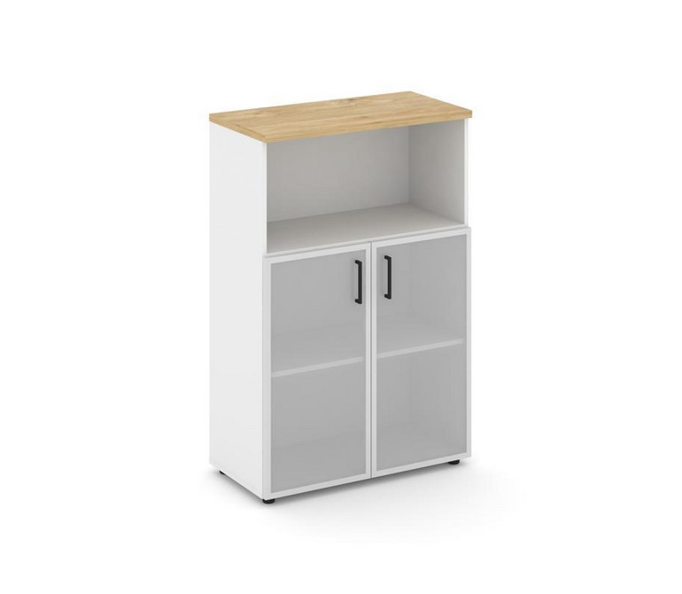 Style Project Шкаф средний широкий SN.STS.E-203 Белый/Тиквуд Светлый/Сатин/Черный Ручки 796*400*1203