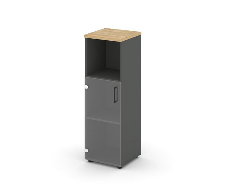 Style Project Шкаф средний узкий SN.STU.E-202(L) Антрацит/Тиквуд Светлый/Прозрачный/Черный Ручки 400