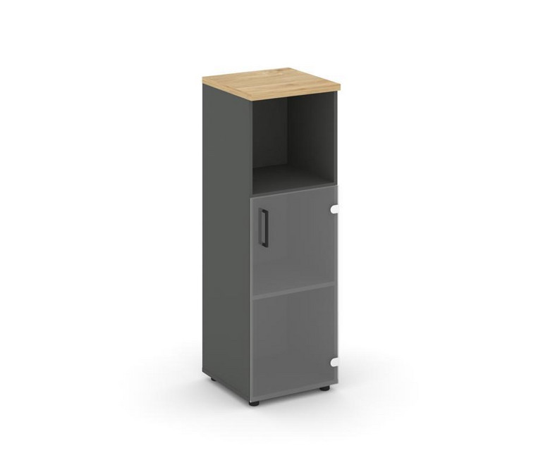 Style Project Шкаф средний узкий SN.STU.E-202(R) Антрацит/Тиквуд Светлый/Прозрачный/Черный Ручки 400