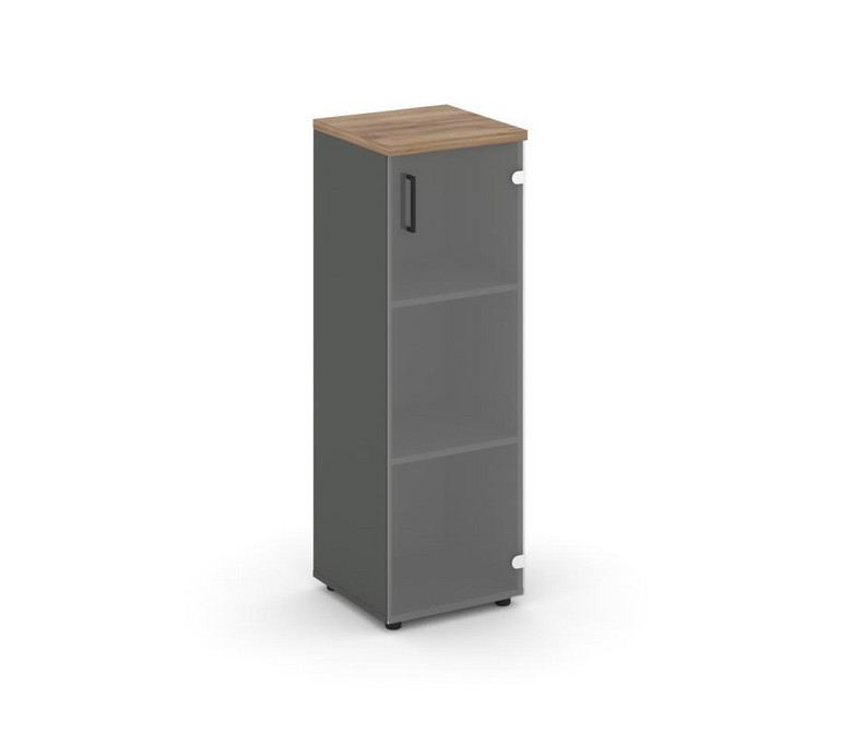 Style Project Шкаф средний узкий SN.STU.E-205(R) Антрацит/Дуб Табак/Прозрачный/Черный Ручки 400*400*