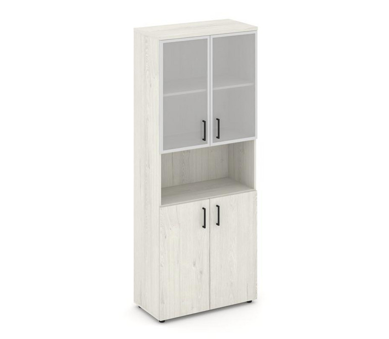 Style Project Шкаф высокий широкий SN.STS-106 Дуб Наварра/Сатин/Черный Ручки 796*400*1982