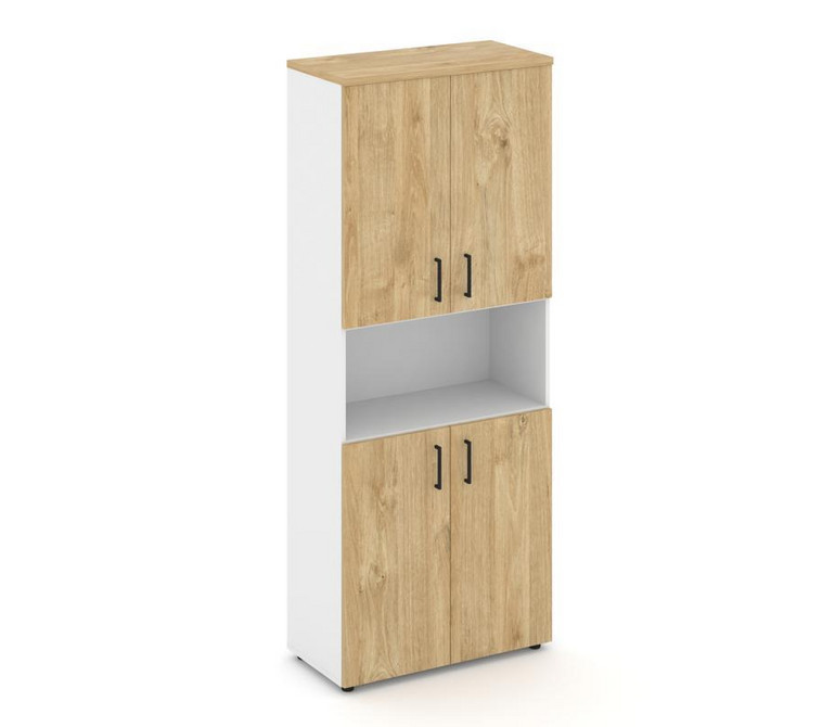 Style Project Шкаф высокий широкий SN.STS-107 Белый/Тиквуд Светлый/Черный Ручки 796*400*1982