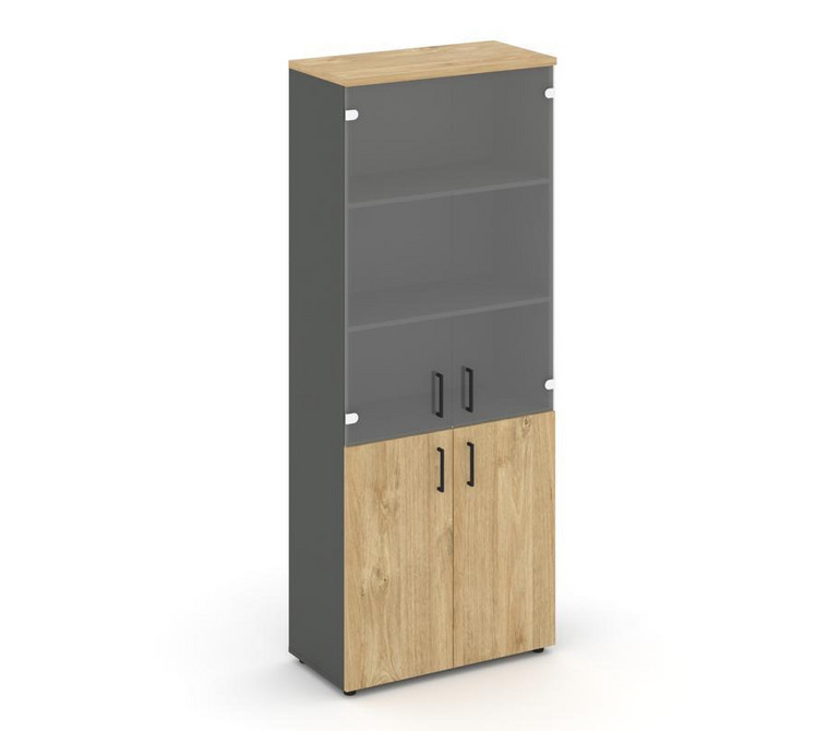 Style Project Шкаф высокий широкий SN.STS.E-102 Антрацит/Тиквуд Светлый/Прозрачный/Черный Ручки 796*