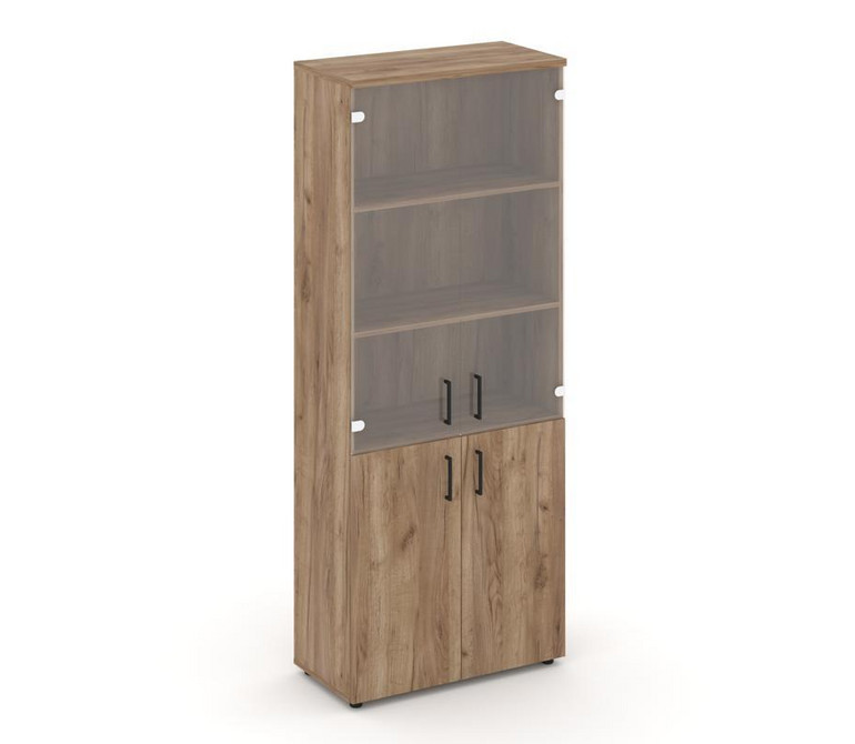 Style Project Шкаф высокий широкий SN.STS.E-102 Дуб Табак/Прозрачный/Черный Ручки 796*400*1982