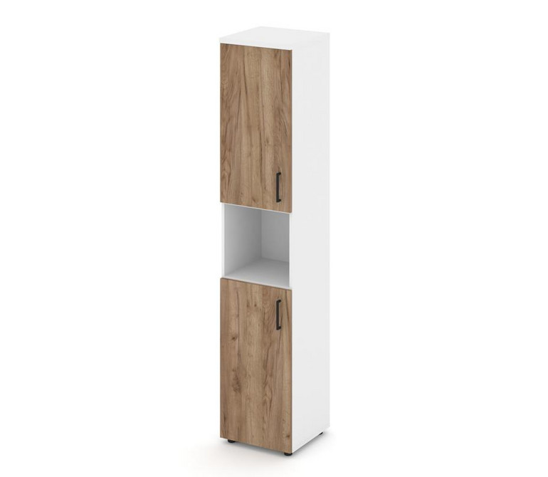 Style Project Шкаф высокий узкий левый SN.STU-107(L) Белый/Белый/Дуб Табак/Черный Ручки 400*400*1982