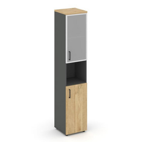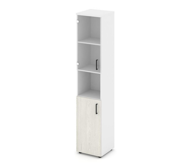 Style Project Шкаф высокий узкий левый SN.STU.E-105(L) Белый/Белый/Дуб Наварра/Черный Ручки 400*400*