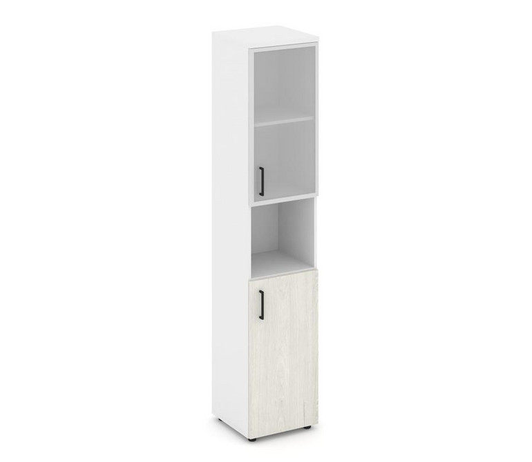 Style Project Шкаф высокий узкий правый SN.STU-106(R) Белый/Белый/Дуб Наварра/Черный Ручки 400*400*1