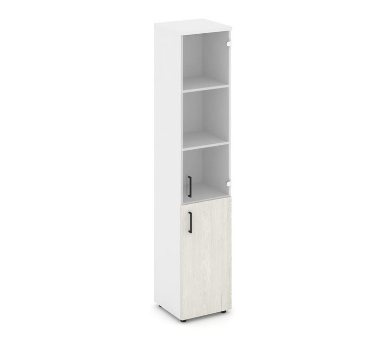 Style Project Шкаф высокий узкий правый SN.STU.E-102(R) Белый/Белый/Дуб Наварра/Черный Ручки 400*400