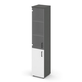 Style Project Шкаф высокий узкий правый SN.STU.E-107(R) Белый/Белый/Дуб Наварра/Черный Ручки 400*400
