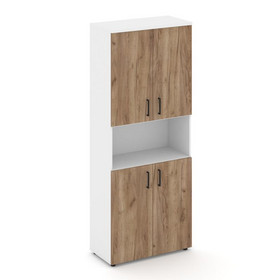 Style Project Шкаф высокий узкий SN.STU-105(L) Акация Лорка/Белый/Прозрачный/Черный Ручки 400*400*19