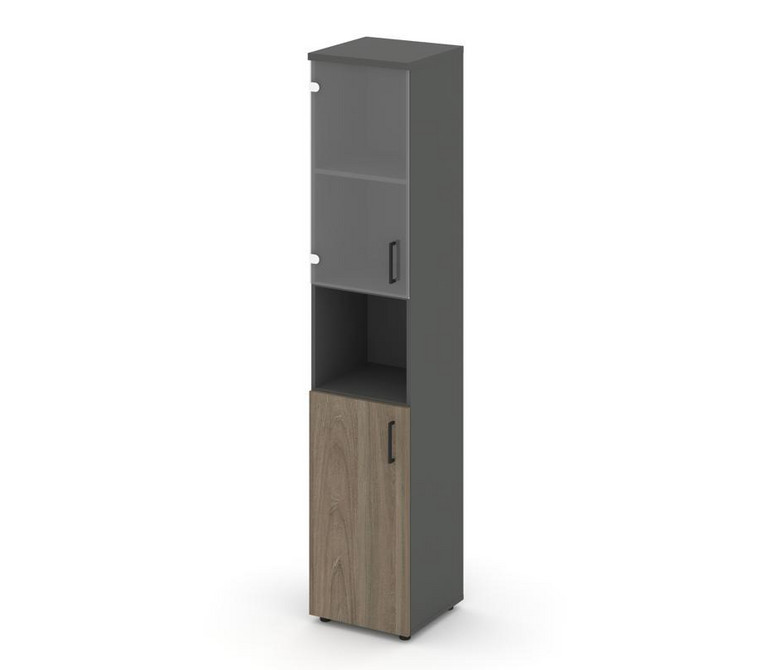 Style Project Шкаф высокий узкий SN.STU-105(L) Антрацит/Вяз Благородный/Прозрачный/Черный Ручки 400*