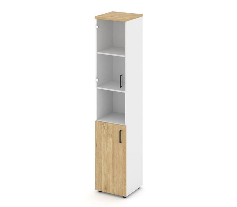 Style Project Шкаф высокий узкий SN.STU-105(L) Белый/Тиквуд Светлый/Прозрачный/Черный Ручки 400*400*